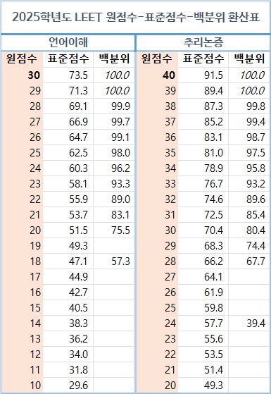 ※ 2020년 LEET부터 언어이해 영역은 평균 45에 표준편차 9, 추리논증 영역은 평균 60에 표준편차 12로 변경되었습니다.